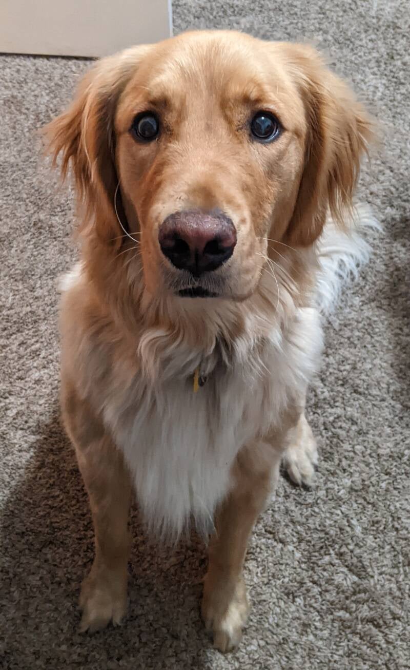 "Let’s start with the basics: I’m rocking a dark auburn coat so shiny it’ll make the sun jealous. My golden head? Iconic. It’s the kind of head that looks great in every angle of a selfie, if you’re into that. People often stop me on the street just to compliment my “perfect retriever vibe.” But don’t worry—I’m humble about it.